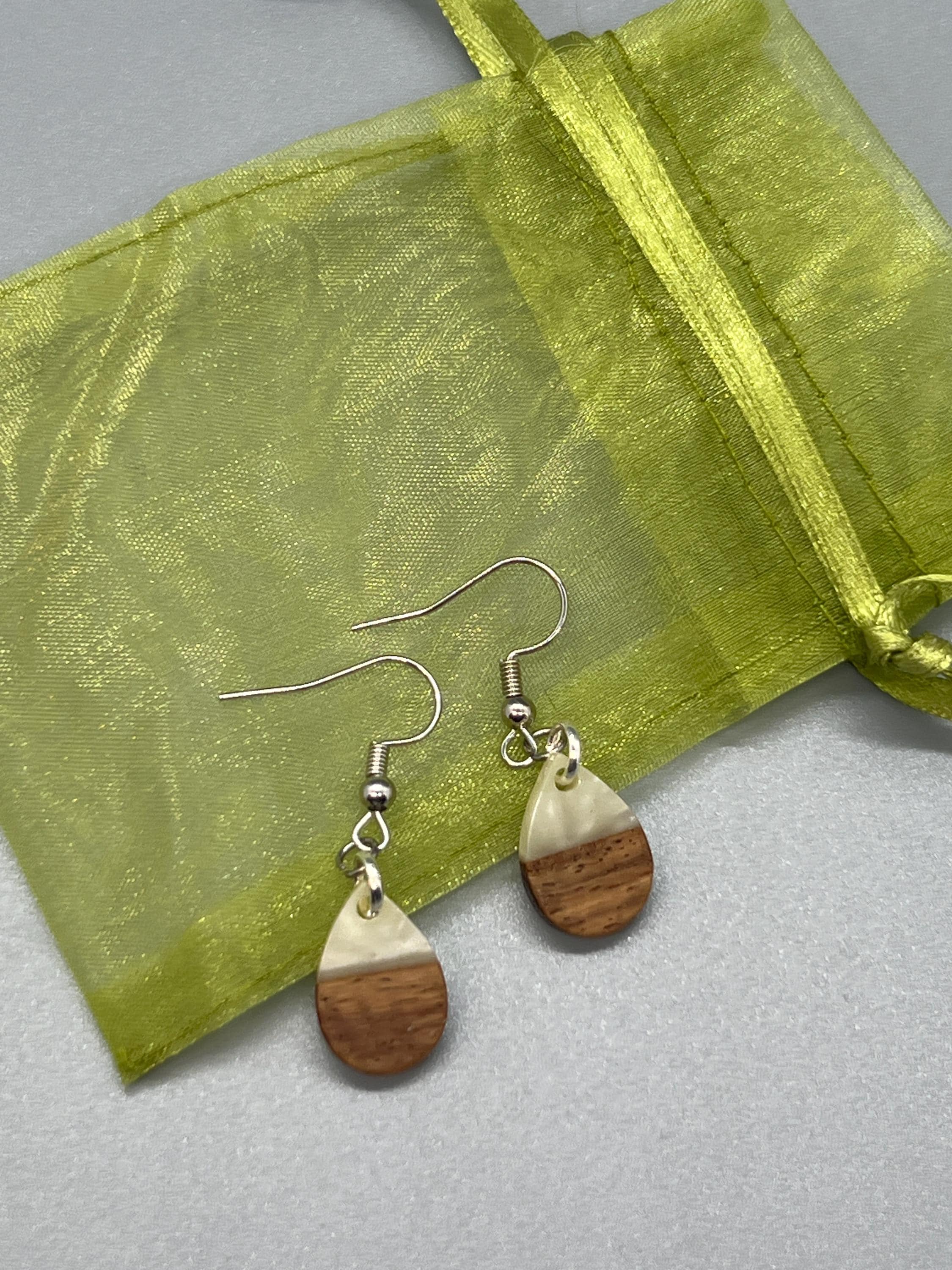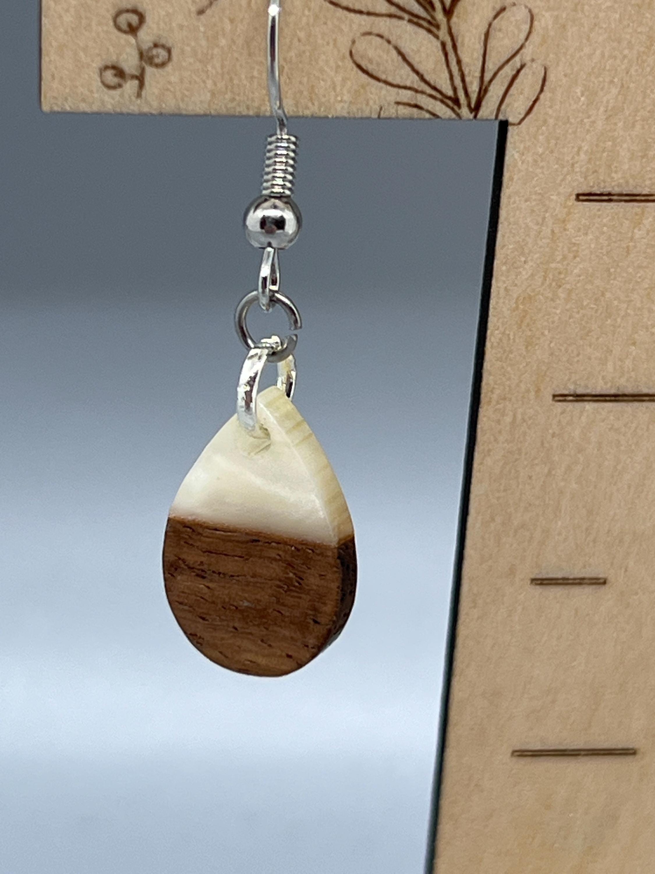 Add a touch of nature and artistry to your jewelry collection with these Wood and Resin Teardrop Earrings. Click Add to Cart now and treat yourself or a loved one to a piece of handmade craftsmanship!